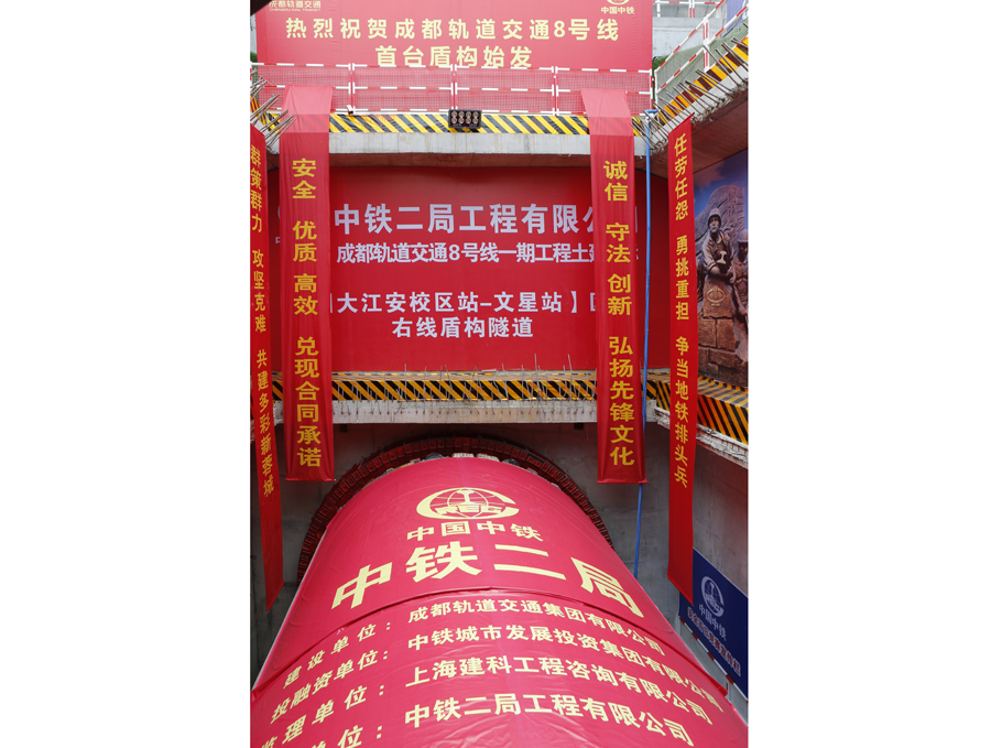 9月29日,首臺盾構機從川大江安校區站右線始發,標志著8號線一期工程進入盾構掘進施工階段。